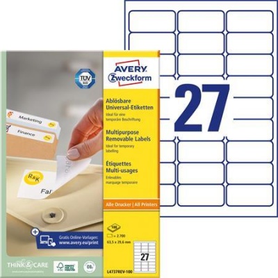 Etikett, univerzális, eltávolítható, 63,5x29,6 mm, AVERY ZWECKFORM, 2700 etikett/csomag