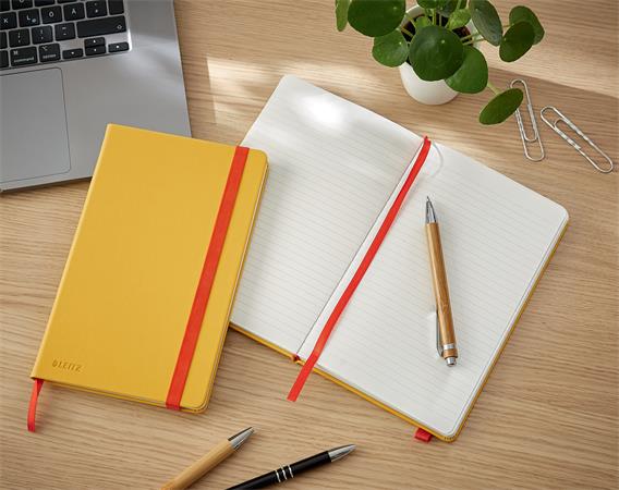 Beíró, A5, vonalas, 80 lap, keményfedeles, LEITZ "Cosy Soft Touch", melegsárga