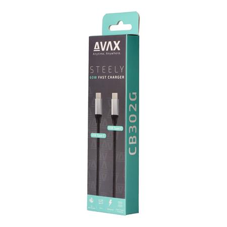 Töltőkábel, USB-C - USB-C, 60W, 1,5 m, AVAX "CB302G", acélszürke